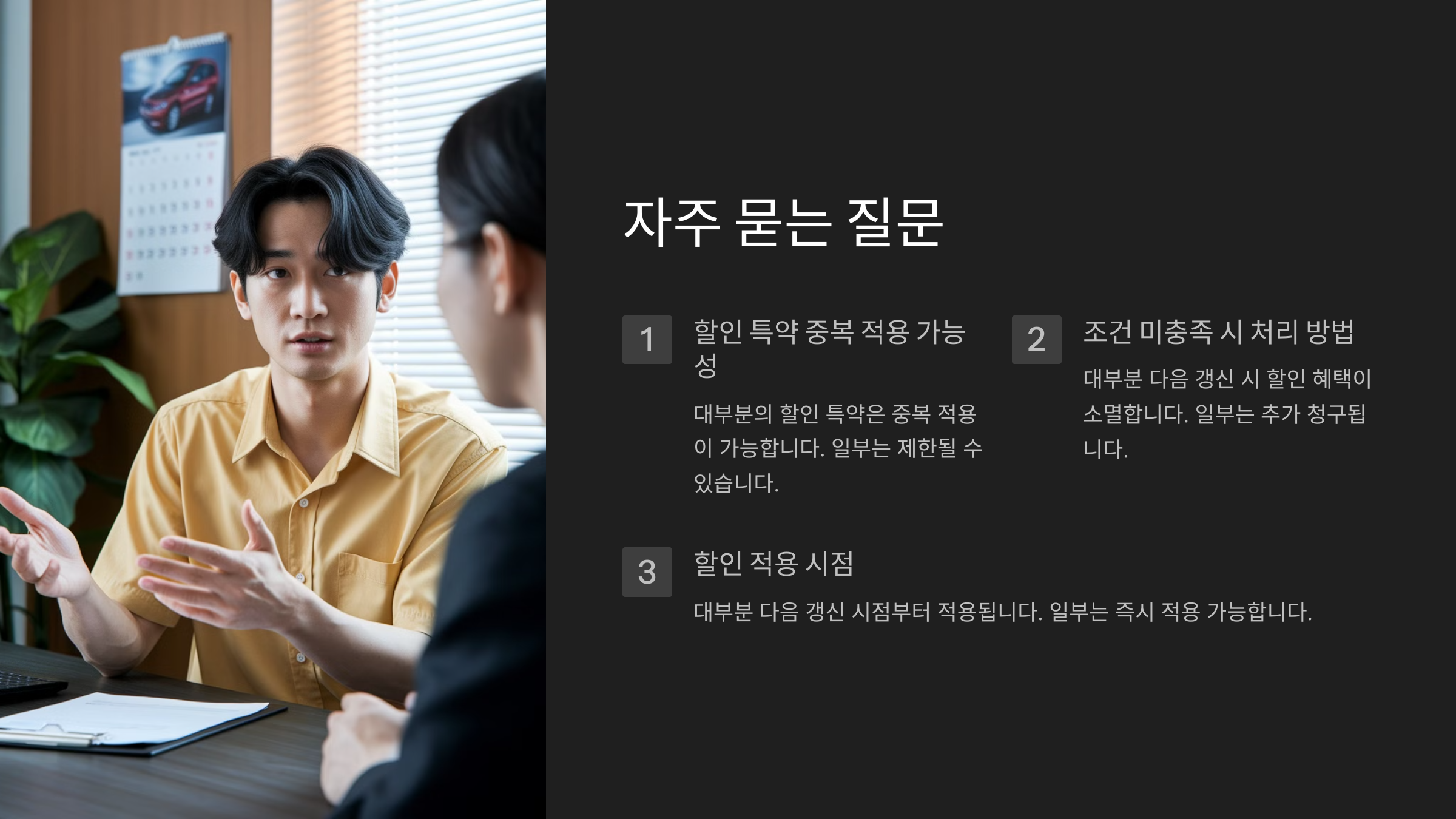 | 보험사 | 할인율 | 적용 조건 | 추가 혜택 |