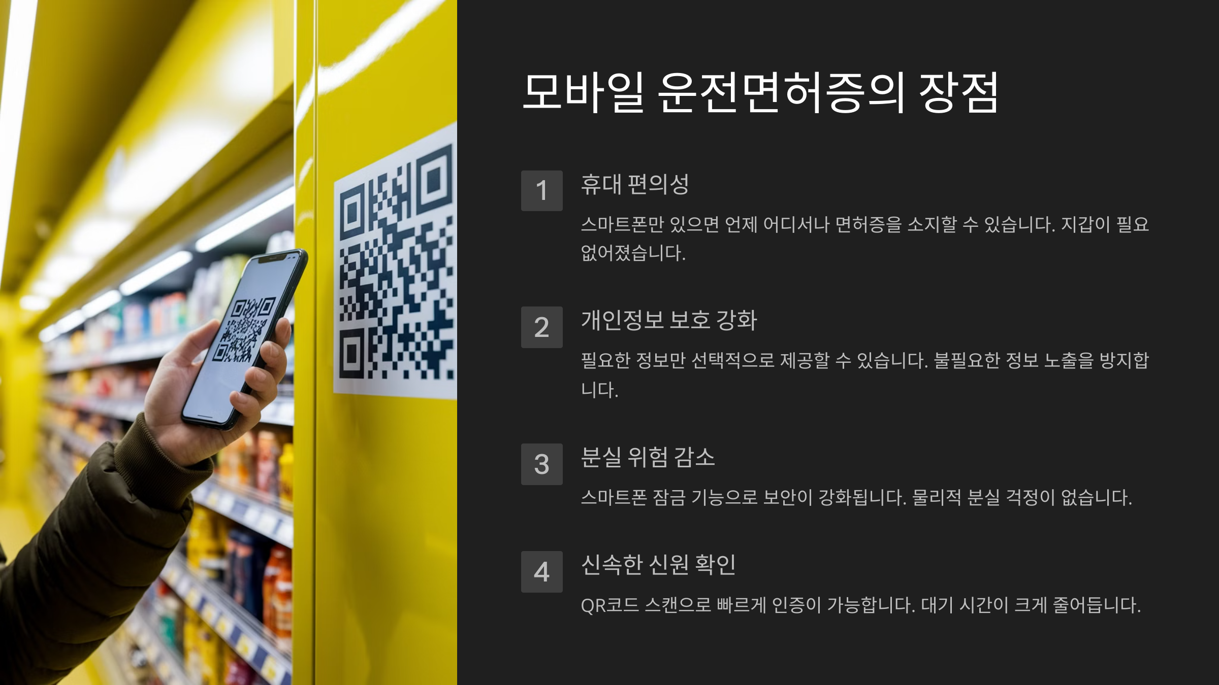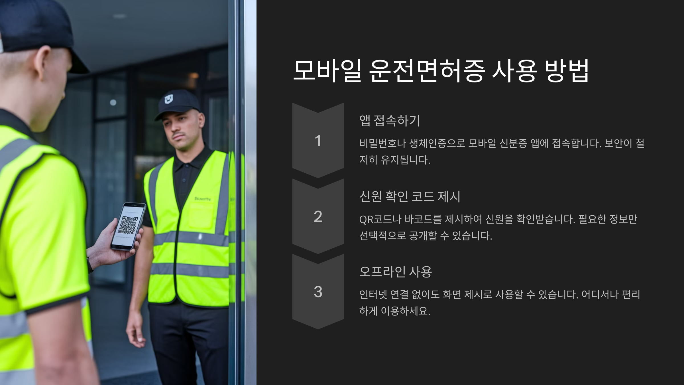 ✔️ 편리함: 스마트폰 하나만 있으면 면허증을 따로 들고 다닐 필요가 없어요.