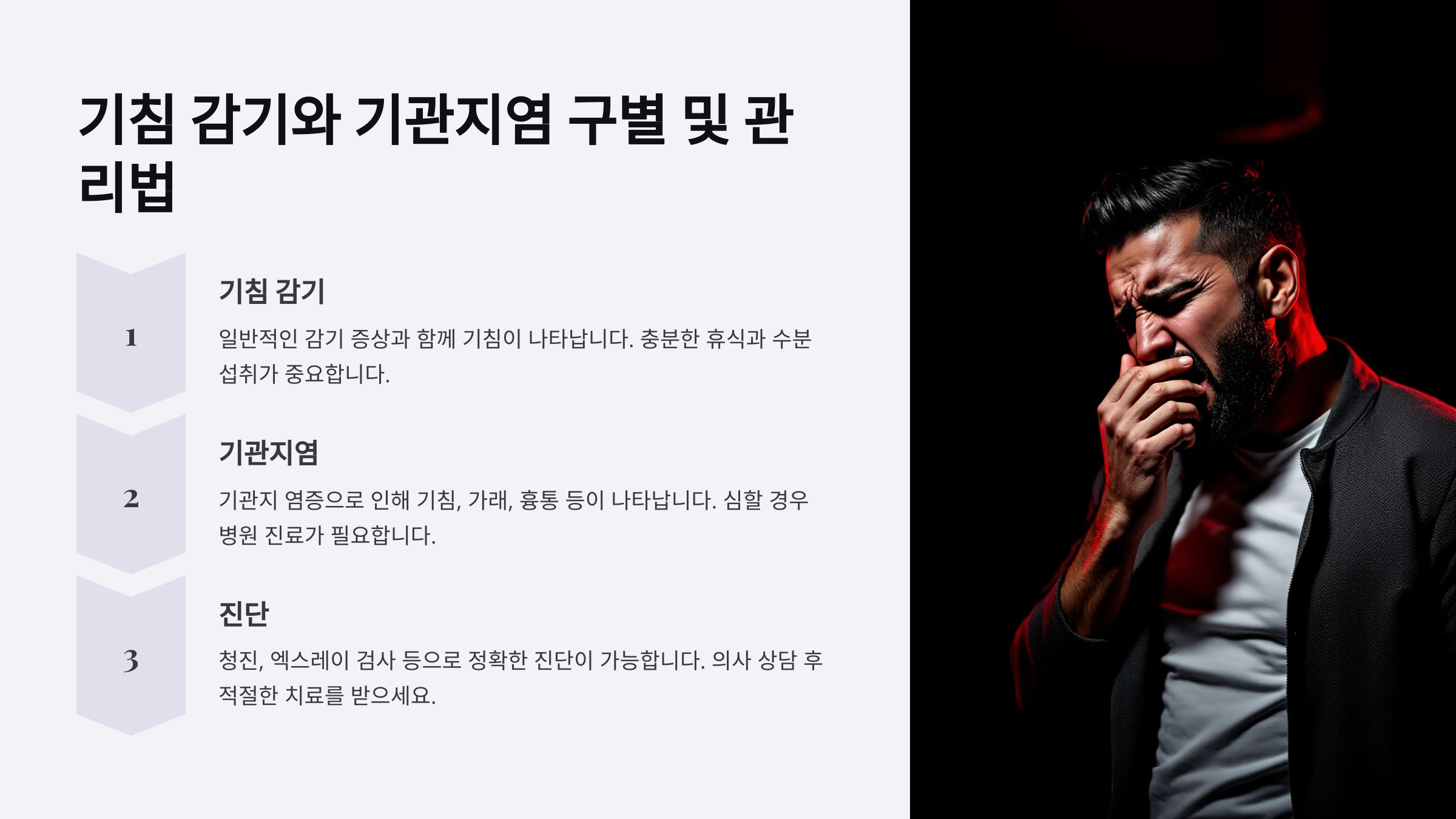 기관지염은 방치하면 폐렴으로 발전할 수 있어요. 만약 감기약을 먹어도 증상이 나아지지 않는다면 어떻게 해야 할까요? 🤔
