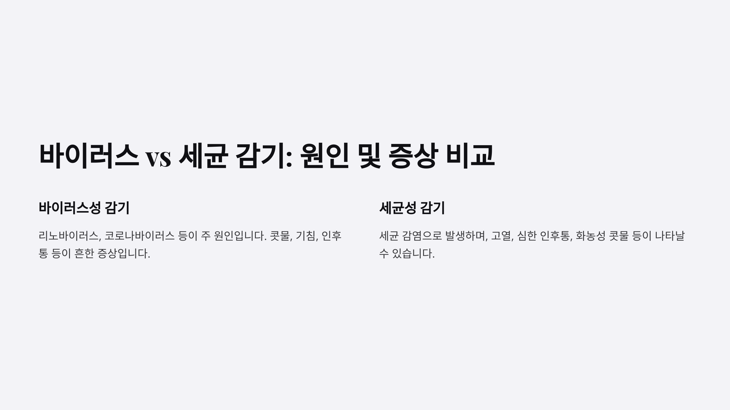 그렇다면 바이러스성 감기와 세균 감기의 차이는 무엇일까요? 🧐